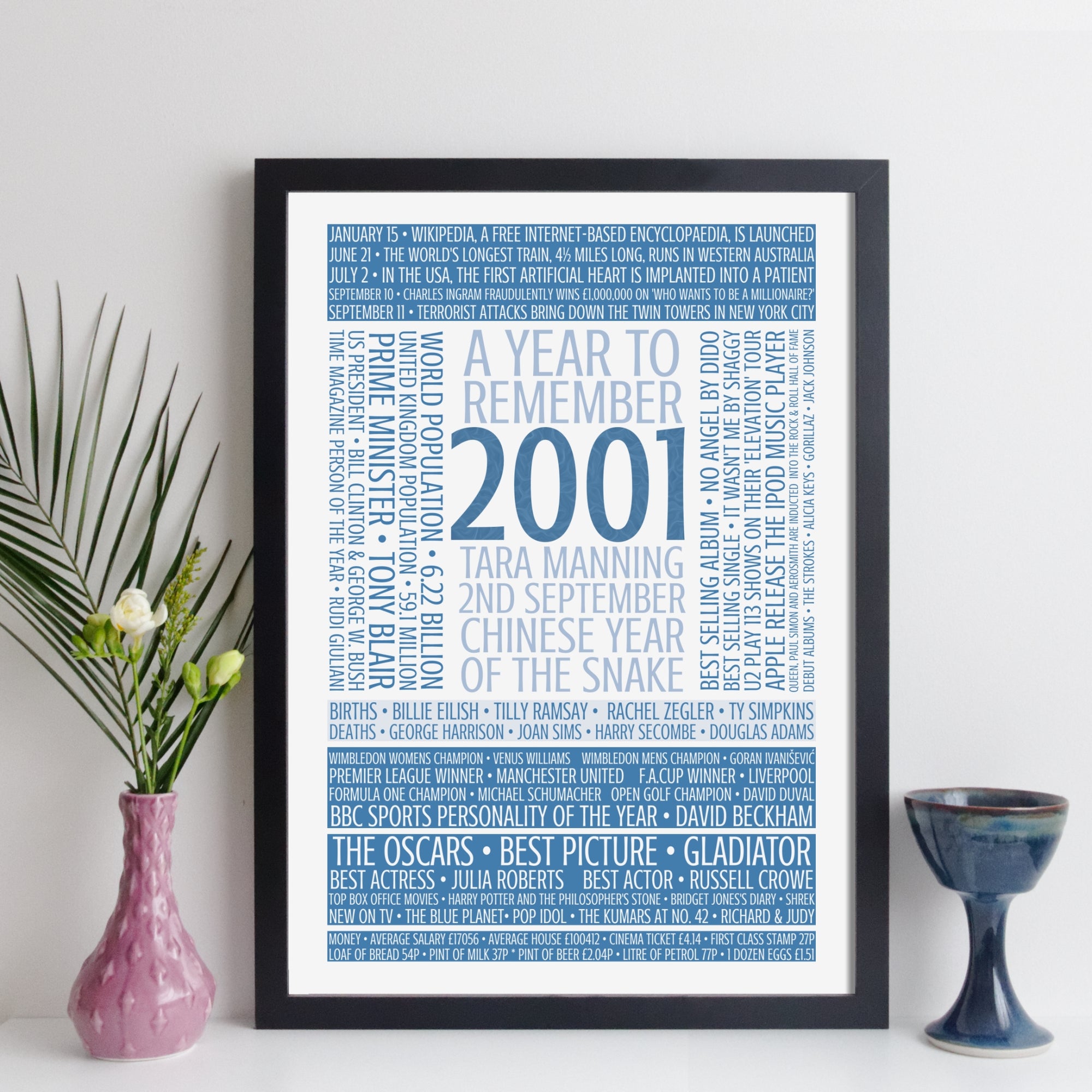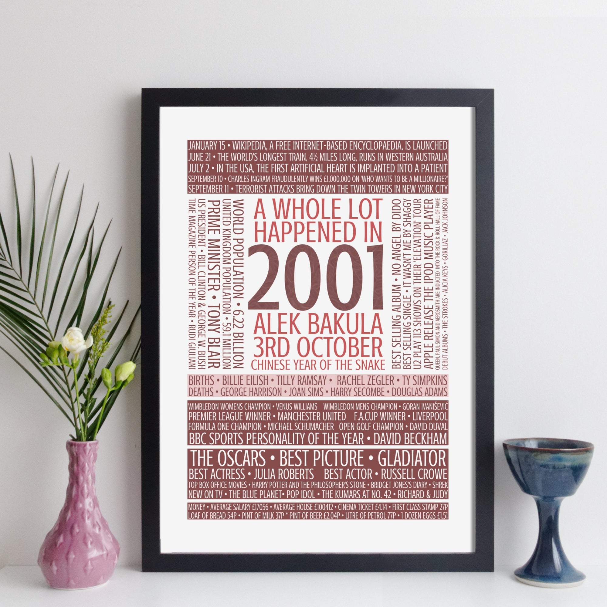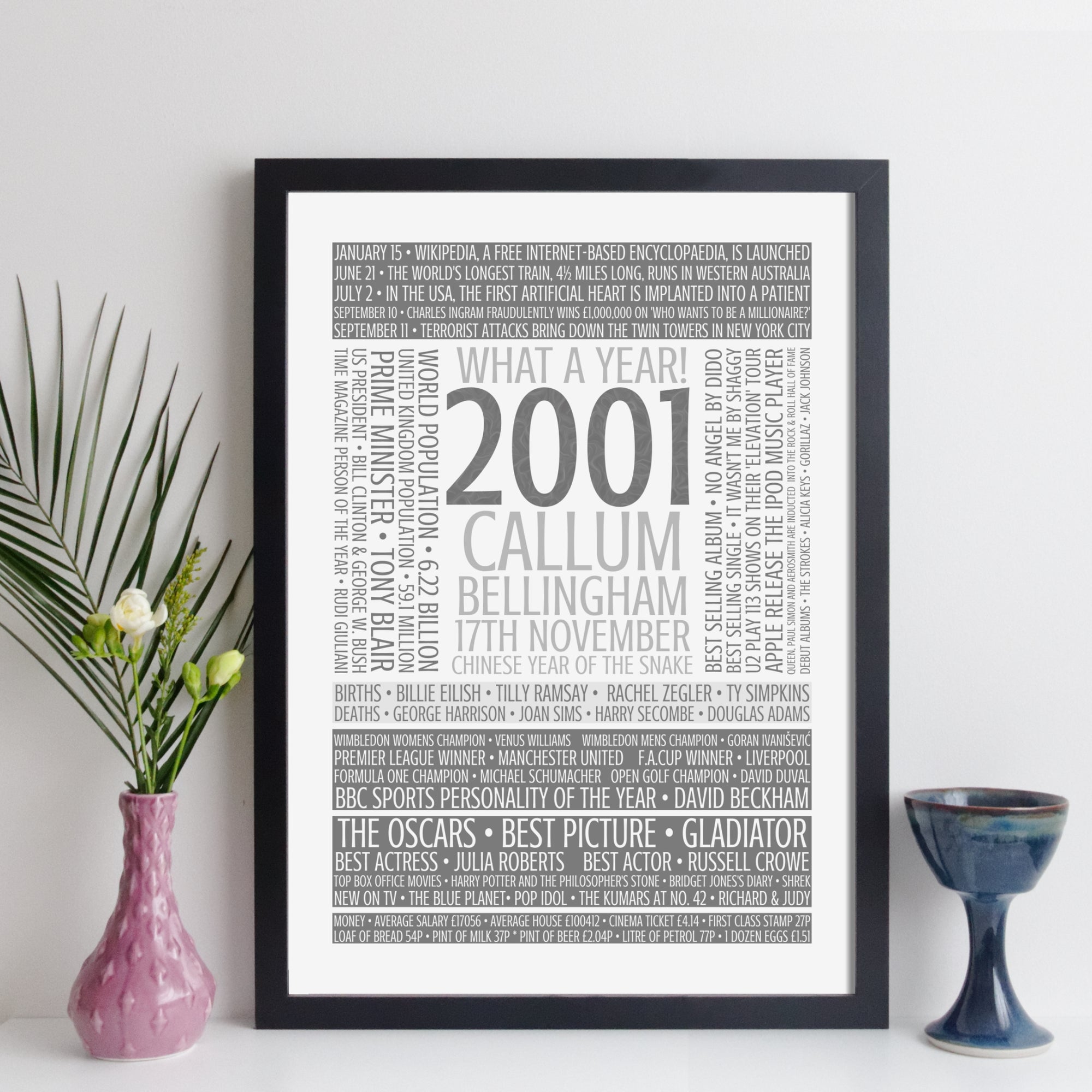 Personalised Born In 2001 Facts Print UK 2001 birthday gift idea